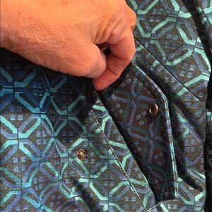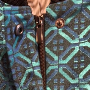Elevate your style with the St. John Women’s Blue and Turquoise Bomber style Jacket. This jacket features a striking pattern, perfect for any occasion. Quality is guaranteed with the St John name. Stand out in this beauty!