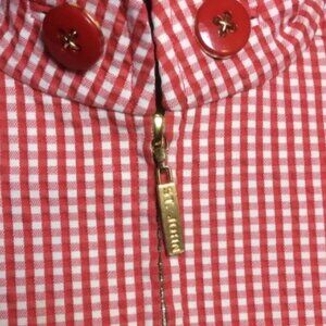 NWOT St. John Yellow Label Red Gingham Cotton Blend Zip Blazer Size 4