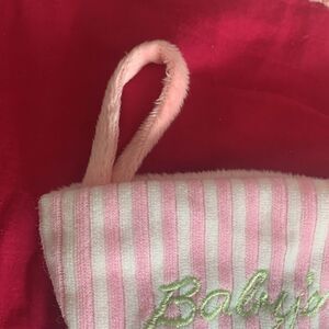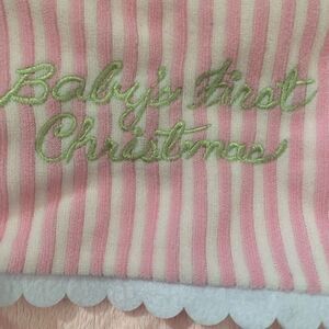 NWOT St Nicks Choice Pink Embroidered Baby’s First Christmas Stocking