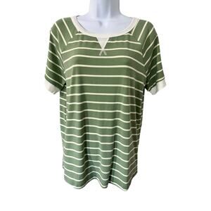 Add an easy, go-to essential to your wardrobe with this new without tags (NWOT) Staccato ribbed knit top. Featuring green and white horizontal stripes, soft stretch, and a flattering fit, this tee is perfect for casual layering or standalone wear.