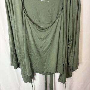 NWOT State of Day L 2-Piece. Fluid-Knit Pajama Set Wrap Robe Tank Organic Green