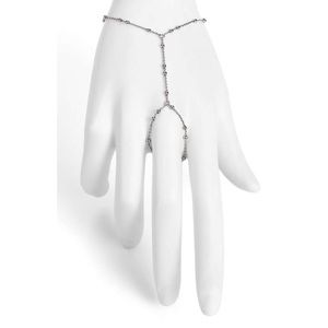 NWOT Rebecca Minkoff beautiful dainty hand chain. A comfortable dainty hand chain dotted with beads. -Lobster clasp -Approx. 6.5" Bracelet Length with 1.5" extension Available in silver crystal and gold crystal