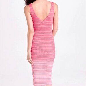 NWOT Staud classic Dana Dress in pink ombre with white stripes. Sleeveless v-neck midi, size XS (also fits S), made from Staud's signature ribbed knit fabric.