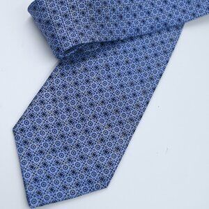 NWOT Stefano Ricci Blue With Gold Geometric Satin Smooth Silk Tie Italy