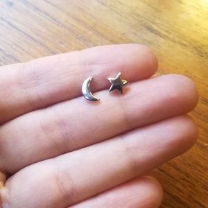 NWOT Sterling Silver Moon and Star Stud Earrings. Approx 7-9mm. Marked 925