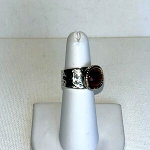 Super Cool- Hammered Sterling Silver 14K Accented Genuine Baltic Amber Passage to Israel Designer ring. Comes with gift bag. Fantastic gift. Boho Casual Office Goth Appropriate for any occasion.