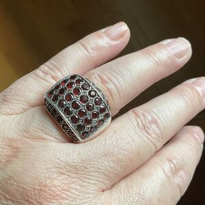 NWOT Sterling Silver 925 Garnet Wide Ring Size US 7.5