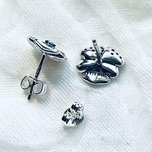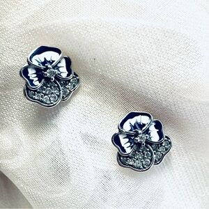 NWOT Sterling Silver 925 Two-Tone Blue Flowers Stud Earrings