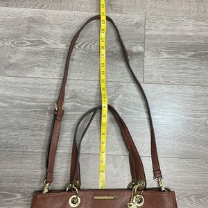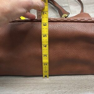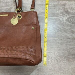 NWOT Steve Madden Faux Pebbled Leather Handbag with Shoulder Strap. Gold hardware, removable adjustable shoulder strap, woven detail along both front and back, outside pocket with magnetic snap closure. Inside compartment has magnetic snap closure with 3 sections, one zippered, one with small zipper pocket and the other with 2 slip pockets. Please see photos for approximate measurements and details. Item may show difference in color based upon photography and perception. Photos are part of the description, as everyone’s level of condition may vary. From smoke free and pet free home. All packages are shipped the same or next business day.