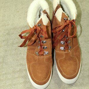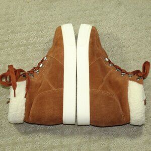 NWOT Steve Madden Wharton Women's 10 Cognac Suede Shearling Lace Up Sneaker Boot