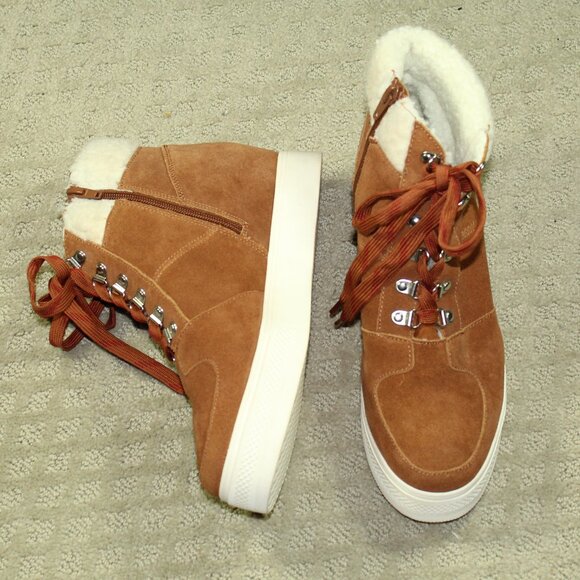 NWOT Steve Madden Wharton Women's 10 Cognac Suede Shearling Lace Up Sneaker Boot