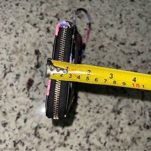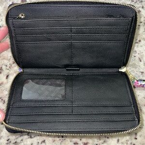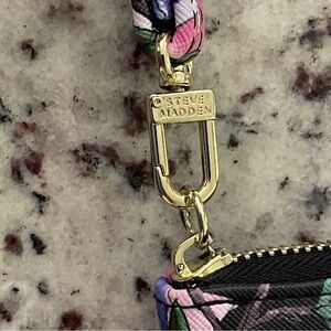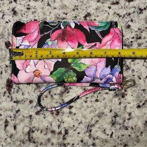 NWOT Steven Madden Pink Floral Print Wristlet Wallet Black Faux Leather Clutch