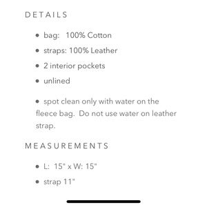 spot clean only with water on the fleece bag. Do not use water on leather strap.