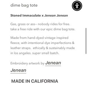 NWOT Stoned Immaculate X Jenean Jenean embroidered Dime Bag Tote