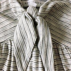 Cute and casual strapless top with a babydoll bottom and decorative tie knot in the front
