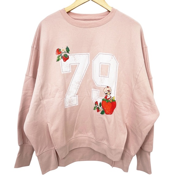 NWOT Strawberry Shortcake Oversized 79 Graphic Sweatshirt with Front Hem Slits