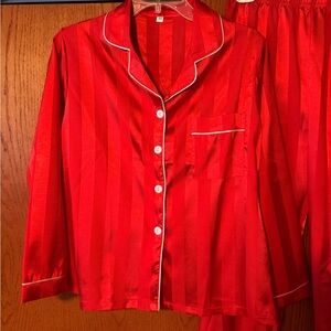 NWOT Striped Satin Feel Women’s Pajama Set Sz Medium Red, Bottoms Waist Elastic