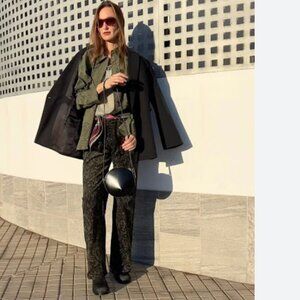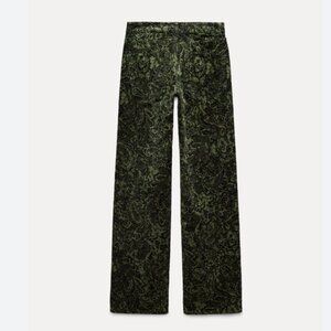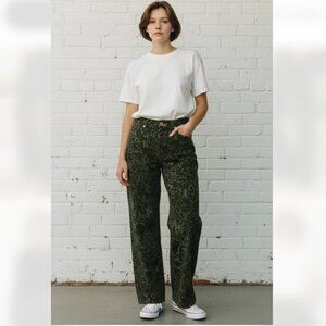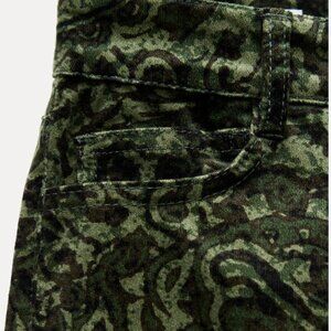 corduroy pants in a rich olive colorway. Premium soft-touch corduroy fabric with all-over paisley camouflage print. Relaxed straight-leg fit, mid-rise, 5-pocket styling. Perfect for streetwear lovers looking for a standout piece
