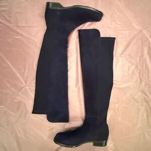 NWOT Stuart Weitzman Navy Blue Suede/Black Over-the-Knee 5050 Boots Size 6 $895