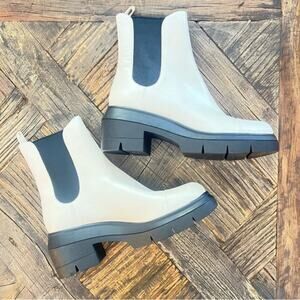 NWOT Stuart Weitzman Norah Leather Lug-Sole Chelsea White Booties - 8.5
