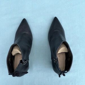 A pointy-toe leather bootie proves it's as detail-oriented as your résumé with a back tie detail, easy side zip closure and block heel.