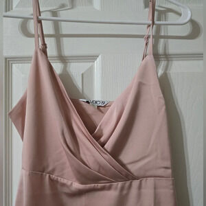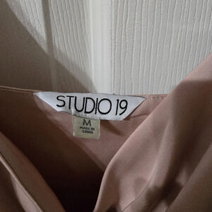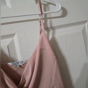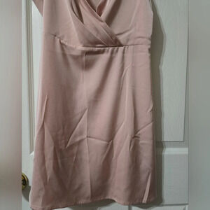 NWOT Studio 19 Y2K Blush Pink Satin Mini Slip Dress/Tunic, Pleated Wrap Neckline