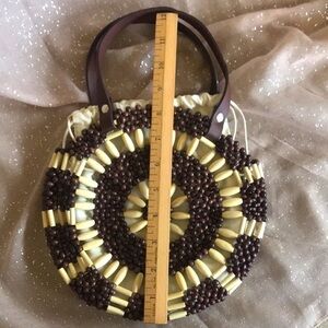 NWOT Studio Collection Beaded Circular Brown & Cream Handbag Purse