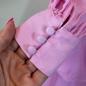 This dress is incredible and the small details throughout the dress really elevates into a gorgeous dress for any occasion. Designer brands worn by Celebrities like Princess Kate Middleton, Michelle Obama, Cate Blanchett and Scarlet Johansson. Fabric covered cuff buttons, tiered ruffle bottom, stretch waisted and slight balloon sleeves.