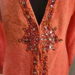 NWOT Stunning Bejeweled Tracy Reese Salmon Angora Cashmere Wool Blend Cardigan