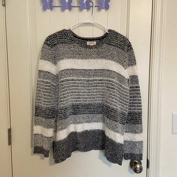 NWOT | Style & Co women’s black white & gray soft fuzzy striped sweater — medium