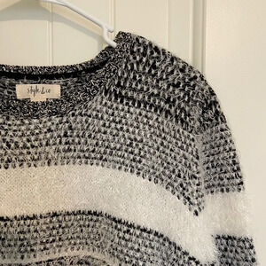 Women’s Style & Co sweater. Sweater is colored black white & gray & has a striped pattern. Material is so incredibly soft & comfy! Size medium. Smoke free home!