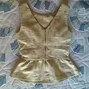 This top is cream with gold detail all over. It zips in the back and the inside is not lined. Great for the holidays or date night. I bought this top in Vegas and never got a chance to wear it.