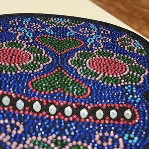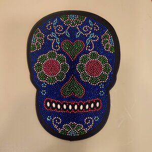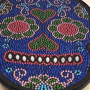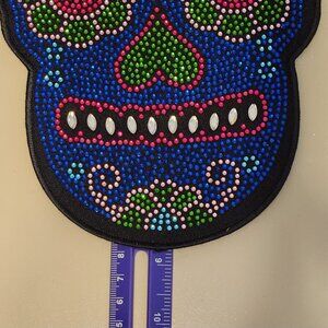 Beautiful colored rhinestones adorn this very well made patch, with embroidered edge.