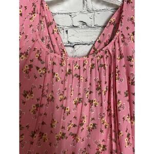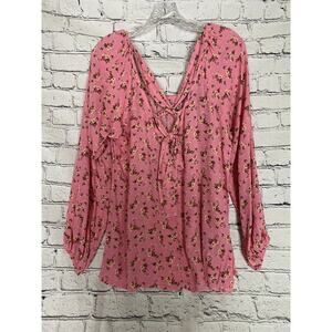 NWOT Sugarfox Pink Floral Criss-Crossed Laced Tied Bow Back Flowy Boho Blouse S. Shipped with USPS Ground Advantage.