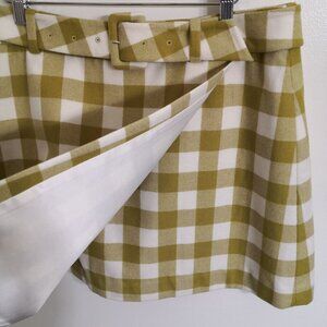 NWOT Suistudio Wool Check Faux Wrap Miniskirt With Belt Size 12