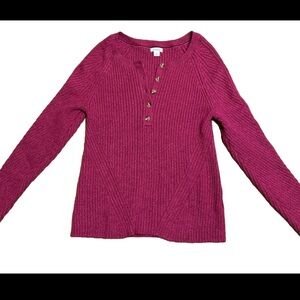 NWOT Sundance Birdie Ribbed Henley Sweater Size Large Berry Pink 10% Silk Knit