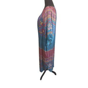This bohemian-inspired maxi dress features vibrant floral prints, a relaxed fit, and an included slip for added comfort. Ideal for casual and stylish wear.