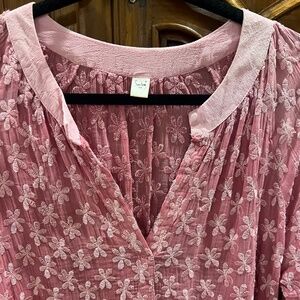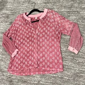 NWOT Sunday St Tropez Pink Long Sleeve Embroidered Top Size Small