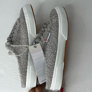NWOT! Superga Slip On Shearling Mule Round Toe Light Gray Women S3112mw Sneakers