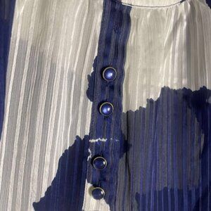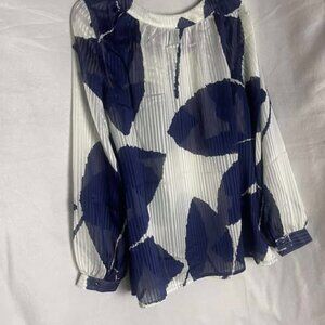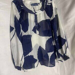 NWOT Susan Graver Style Long Sleeve Sheer Blue &White Blouse Size Medium