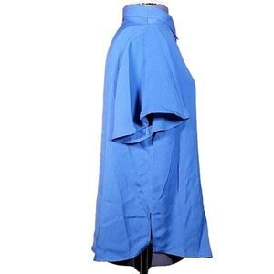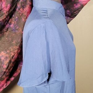 NWOT Susan Graver Textured Woven Button Front Flutter Sleeve Shirt Sz XL