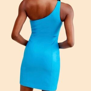 NWOT Susana Monaco Turquoise Vegan Leather One-Shoulder Mini Dress Size Small