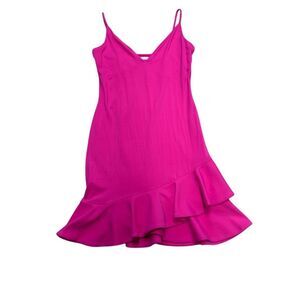 NWOT Susana Monaco Women's Pink Asymmetrical Ruffle Hem Mini Dress Size S