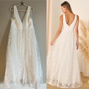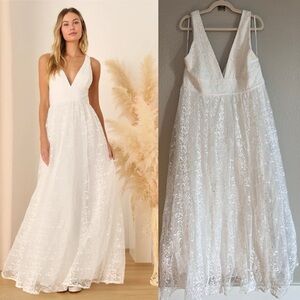 Waltz through your special day looking beyond dreamy in the Lulus Sweetest Beloved White Mesh Embroidered Sleeveless Maxi Dress! Crafted from floral embroidered mesh, this dreamy dress boasts a flattering V-neckline, wide straps, and a princess-seamed bodice. Elegant lace accents the fitted, set-in waist that sits atop an A-line silhouette with a romantic dual-layered tulle skirt that falls to a maxi hem. Turn around to reveal a V-back for an extra-sweet finish. Hidden back zipper/clasp.