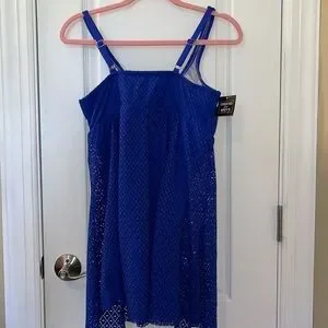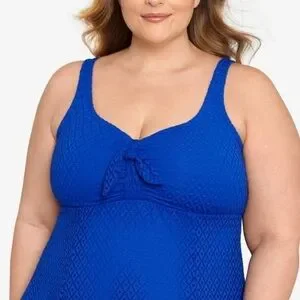 NWOT Swim Solutions COBALT BLUE Knot-Front Tummy-Control Swimdress, 16W