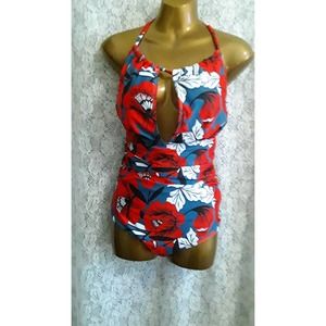 NWOT Swimsuit Sz L One Piece Bright Floral Halter Swimsuit