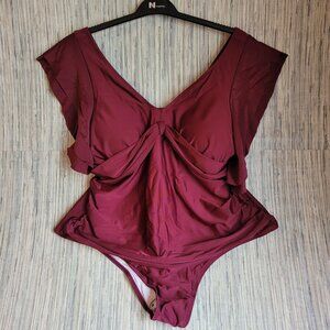 NWOT Swimwear Swimsuit One Piece Plus Size 3X Women’s Burgundy Red Layer Sleeve