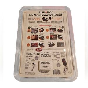 NWOT Compact emergency tool set. Includes keychain tools. Features flashlight and cutter. Durable design. Never opened or used. Made by Swiss Tech Tools.