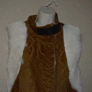NWOT Sz S DROMe Brown Mohair White Trim Zip Up Vest