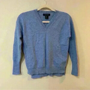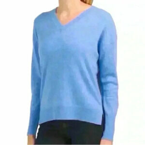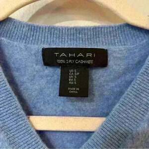 NWOT TAHARI 100% 2 Ply Cashmere Soft V-Neck Blue Sweater Women’s Size Small